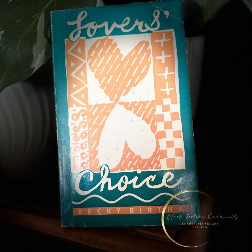Becky Birtha’s collections of short stories - For Nights Like This One: Stories of Loving Women and Lovers’ Choice were two of the vital books I found that helped introduce me to Black Lesbian worlds, relationships, and language as I prepared to graduate from a PWI, excited about my expanding understanding of who I was.